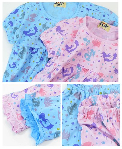 WALK フリルのパンツとパフスリーブが可愛い半袖パジャマ《マーメイド》【PJ-115】 (100cm, ブルー)