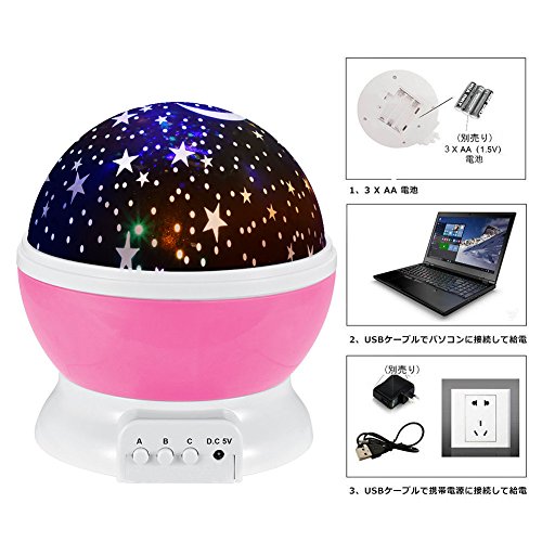 スタープロジェクター ナイトライト 星空ライト 多色変更 プラネタリウム 投影 360度回転 USB 電池 バレンタインデー 結婚式 学園祭 パーティー 飾り 誕生日プレゼント (ピンク)