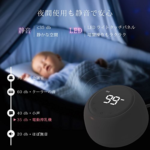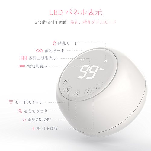 - 【二種類のモードで赤ちゃんの飲むリズムを再現】マッサージモード(高頻度、低吸引力で乳房をリラックスして搾乳を準備する) からどんどん搾乳モード(低頻度、高吸引力で効率的に搾乳する)に変換します。搾乳モードでは強さを9段階に調節できて、赤ちゃんが吸うような心地よさで自分のペースでさく乳できます。