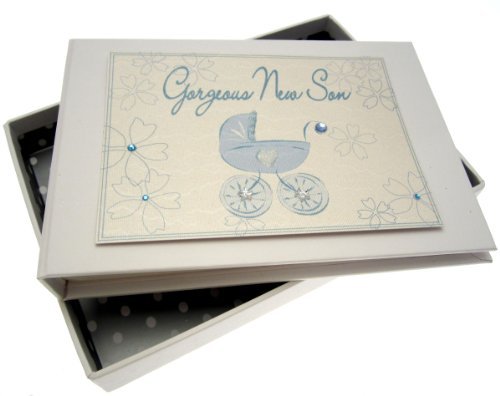 Gorgeous Baby Memory Item;16 plastic sleeves - holds 28 photos;Boxed in top quality white foiled box with perspex lid;Perfect for a special Occassion;Finished with Diamonds & Glitter