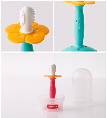 It is produced with 100% platinum silicone for safety. It can be disnfected with micro-wave oven sterilization and boiling water. Softly massage babies gum as soft brush. Training with particular sense of growing helps design, will help for baby's intelligence growing. Baby can grab a spoon of streamlined shape easily and storage it in a sanitary way.