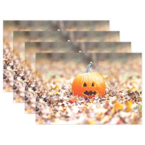 wihveプレースマットWipeableダイニングハロウィンパンプキンLeaves 12 x 18 inch