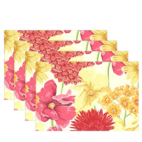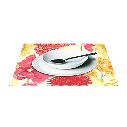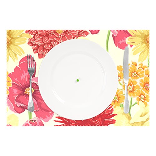 wihveプレースマットWipeableダイニング水彩花トロピカル 12 x 18 inch