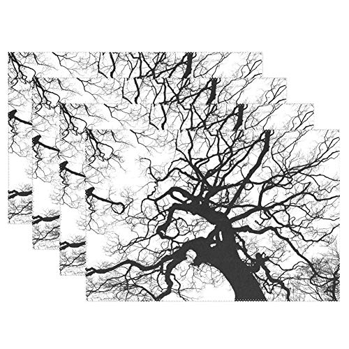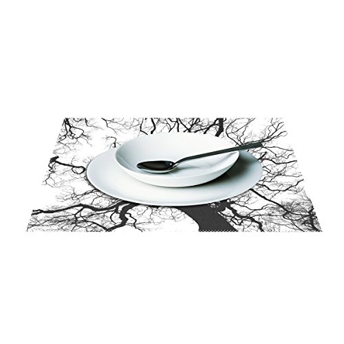 wihveプレースマットWipeableダイニングブラックandホワイト古いツリー 12 x 18 inch