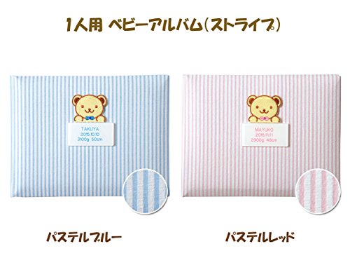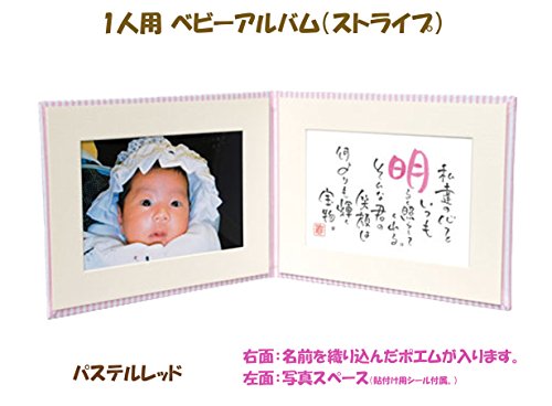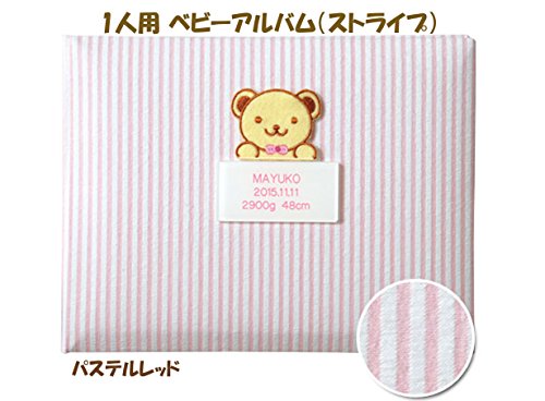 出産記念 赤ちゃん 人気 メモリアルグッズ 【 1人用ベビーアルバム (ストライプ) 】 ネームインポエム 出生記録プレート付き (パステルレッド)