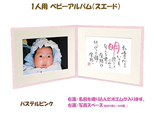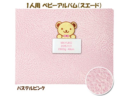 出産記念 赤ちゃん 人気 メモリアルグッズ 【 1人用ベビーアルバム (スエード) 】 ネームインポエム 出生記録プレート付き (パステルピンク)