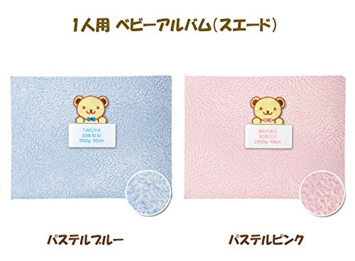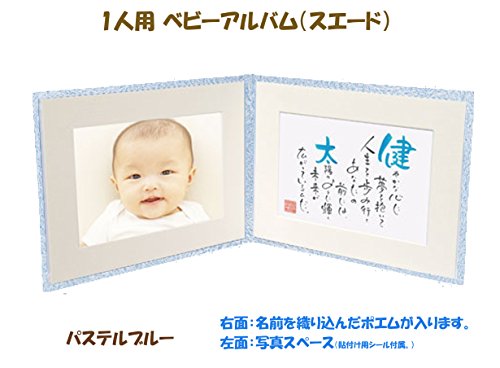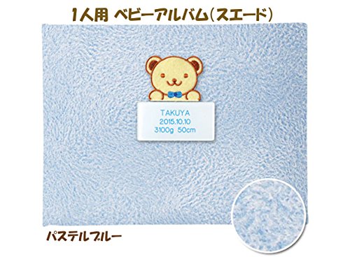 出産記念 赤ちゃん 人気 メモリアルグッズ 【 1人用ベビーアルバム (スエード) 】 ネームインポエム 出生記録プレート付き (パステルブルー)