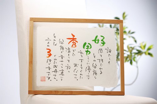 - 手すき和紙を使用し、その風合いを生かすためにガラスに挟み込んだタイプ。