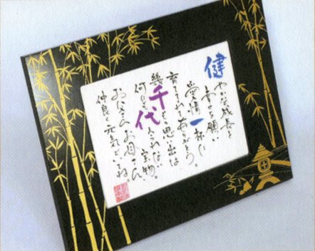 ネームインポエムとは、そのフレーズの通り、人のお名前を織り込んだポエムです。 ご両親への記念品贈呈の際に、二つの作品を並べ”橋渡し”の演出をすることにより、ご両家の絆が結ばれます。