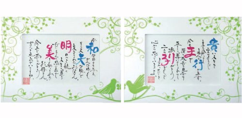 ネームインポエムとは、そのフレーズの通り、人のお名前を織り込んだポエムです。 ご両親への記念品贈呈の際に、二つの作品を並べると、幸せの鳥が四葉のクローバーを運ぶとともに、ご両家の縁を結ぶ円が描かれます。