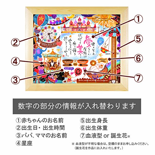 出産祝い 出産記念 ネームインポエム【 BABY BIRTH 遊園地 】★身長・体重・生年月日・パパ・ママのお名前など様々な情報が作品に入ります★