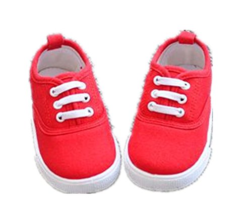 WIN ベビーシューズ 柔らかい靴底 滑り止め ベビー 赤ちゃん シューズ ニーカー 可愛いキッズ靴 子供用歩行靴 ズックシューズ ズックスニーカー 出産お祝い ベビープレゼント 子供靴 赤ちゃんスニーカー (内寸16.8cm, レッド)