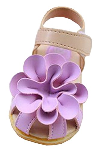 WIN ベビー おしゃれ 靴 フラワー モチーフ サンダル 夏 赤ちゃん キッズ 履き心地 柔らか マジックテープ ストラップ 滑り止め 付き 可愛い 花 女の子 シューズ (16.2CM, パープル)