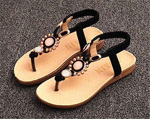 WIN トングサンダル ビーサン ビジュー ぺたんこ ローヒール フラット ぺたんこ カジュアル リゾート 超カワイイ たっぷり (内寸18.5cm, ブラック)