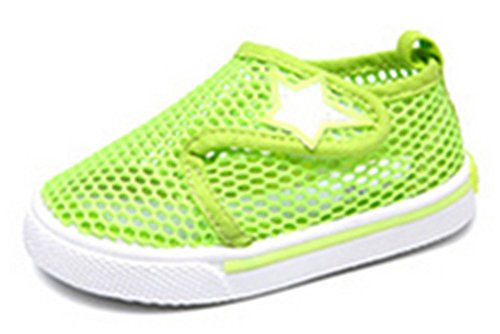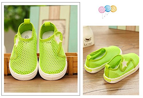 WIN キッズ 夏 メッシュ シューズ 通気性 速乾 軽量 スリッポン プール 海 水遊び 泥んこ へっちゃら 男児 女児 かわいい 子供 靴 マリンシューズ (内寸15.7cm, グリーン)