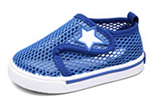 WIN キッズ 夏 メッシュ シューズ 通気性 速乾 軽量 スリッポン プール 海 水遊び 泥んこ へっちゃら 男児 女児 かわいい 子供 靴 マリンシューズ (内寸13.7cm, ブルー)