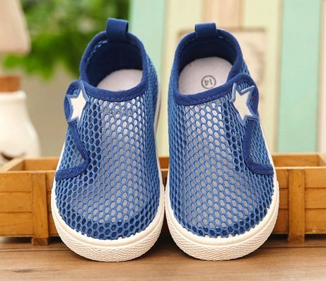 WIN キッズ 夏 メッシュ シューズ 通気性 速乾 軽量 スリッポン プール 海 水遊び 泥んこ へっちゃら 男児 女児 かわいい 子供 靴 マリンシューズ (内寸15.7cm, ブルー)