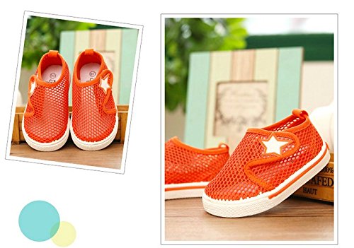 WIN キッズ 夏 メッシュ シューズ 通気性 速乾 軽量 スリッポン プール 海 水遊び 泥んこ へっちゃら 男児 女児 かわいい 子供 靴 マリンシューズ (内寸14.2cm, オレンジ)