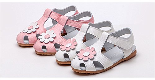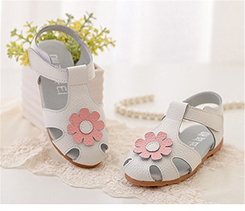WIN ベビー おしゃれ 靴 フラワー モチーフ サンダル 夏 赤ちゃん キッズ 履き心地 柔らか マジックテープ ストラップ 滑り止め 付き 可愛い 花 女の子 シューズ (内寸14.9cm, ホワイト)