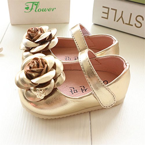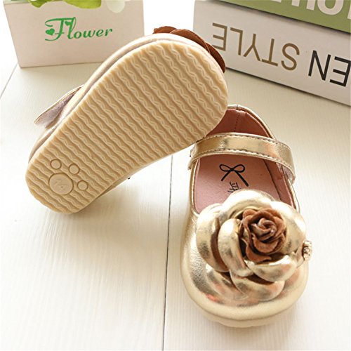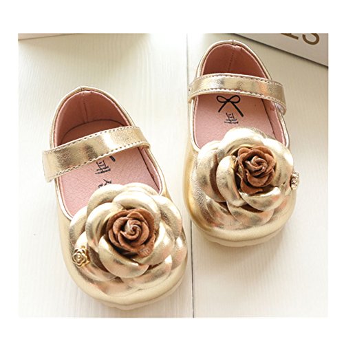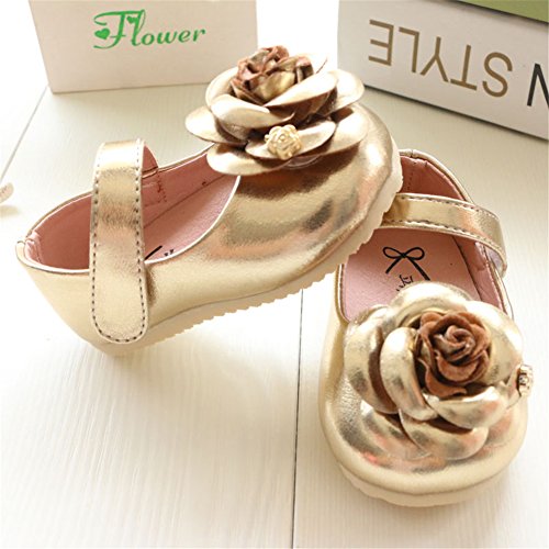 WIN ベビー 夏 シューズ 赤ちゃん 可愛い プレゼント 軽量 履かせやすい マジックテープ ストラップ 花 新生児 フォーマル靴 (内寸13cm, ゴールド)