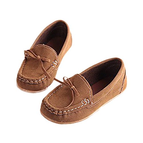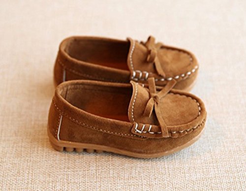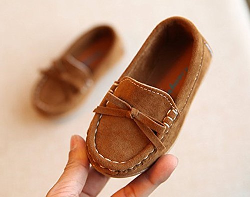 WIN ベビーシューズ キッズシューズ フォーマル モカシン 子供靴 リボン スエード ローファー 靴底 滑り止め おでかけ シューズ フォーマルシューズ 男女兼用 (内寸13cm, カーキ色)