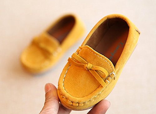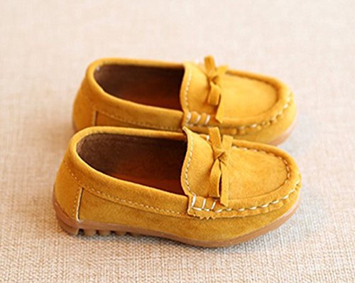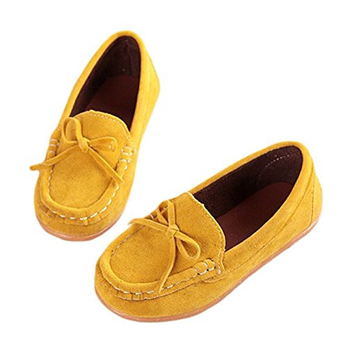WIN ベビーシューズ キッズシューズ フォーマル モカシン 子供靴 リボン スエード ローファー 靴底 滑り止め おでかけ シューズ フォーマルシューズ 男女兼用 (内寸14cm, イエロー)