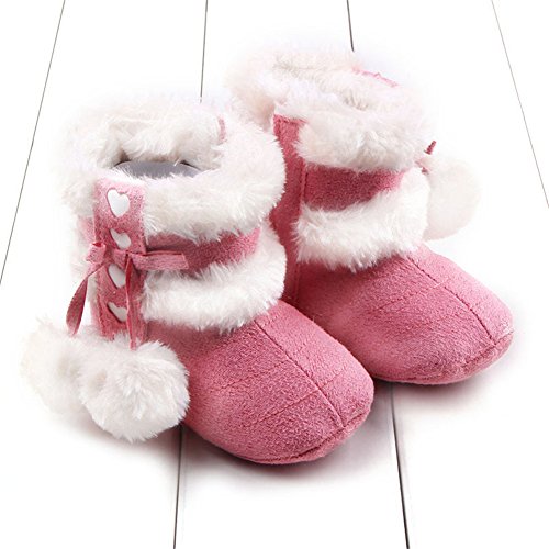 WIN ベビーブーツ コットンブーツ 冬 暖かい 赤ちゃん スノーブーツ ベビーフィート 無地柄 ベビー用品 出産祝い ちよちよ歩き 靴子供用 歩行サポート 防寒対策 ルームシューズ ベビーブーツ 女の子 ガールズ (12.5cm, ピンク)