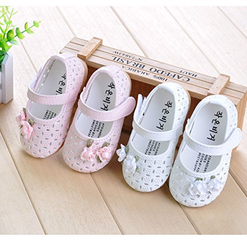 WIN ベビー 夏 シューズ 赤ちゃん 可愛い プレゼント 軽量 履かせやすい マジックテープ ストラップ 花 新生児 フォーマル靴 (内寸12cm, ホワイト)