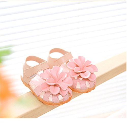 WIN ベビー おしゃれ 靴 フラワー モチーフ サンダル 夏 赤ちゃん キッズ 履き心地 柔らか マジックテープ ストラップ 滑り止め 付き 可愛い 花 女の子 シューズ (14.5cm, ピンク)
