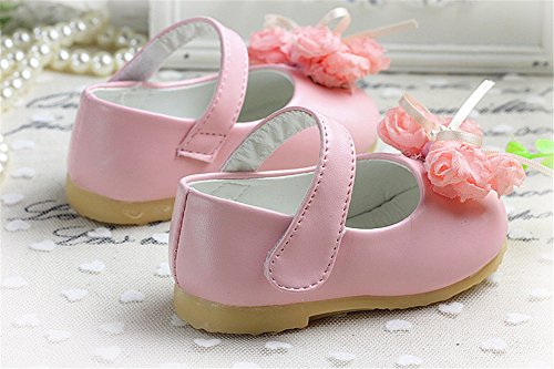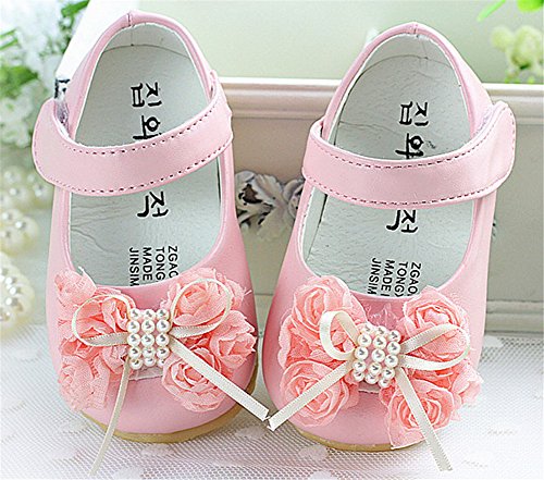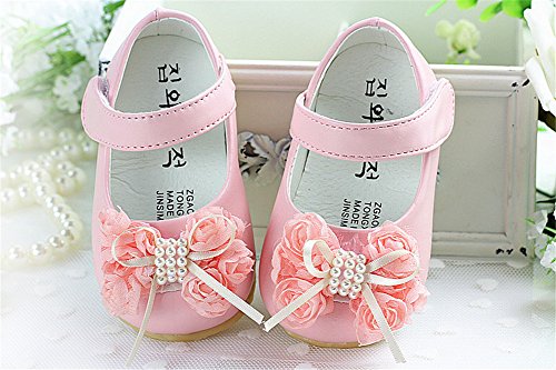 WIN ベビー 夏 シューズ 赤ちゃん 可愛い プレゼント 軽量 履かせやすい マジックテープ ストラップ 花 新生児 フォーマル靴 (13.5cm, ピンク)