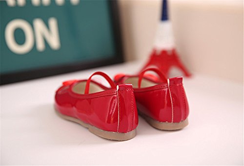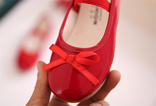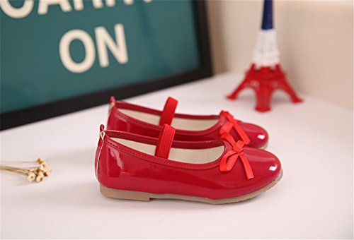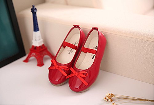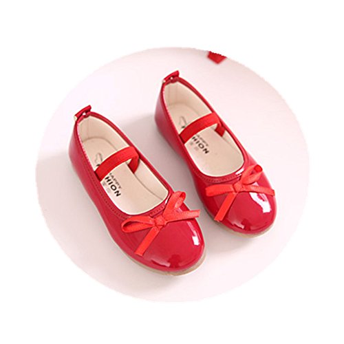 WIN プリンセス風 子供 キッズ靴 フラットシューズ 女の子PUレザー製 ガールズ フラワー 女児 ベビー 赤ちゃん フォーマル 結婚式 可愛い 花 女の子 シューズ (内寸19cm, レッド)