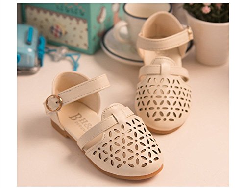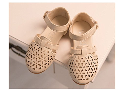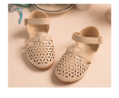 WIN 可愛い キッズ フラットシューズ 女の子 ガールズ サンダル ベビー靴 ベルクロシューズ つま先保護 透かし彫り 女児 子供 フォーマル ベビー 赤ちゃん フォーマル (内寸19cm, クリーム色)