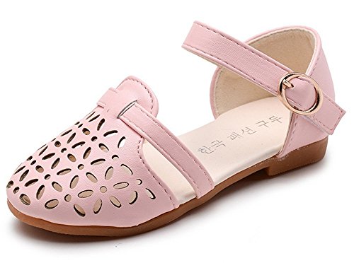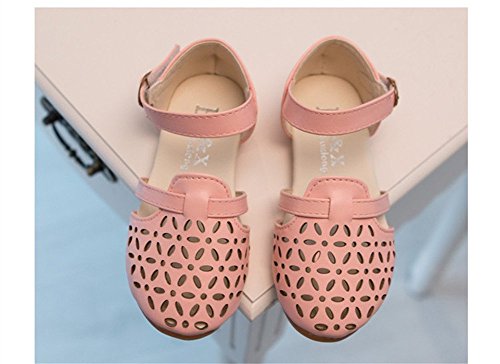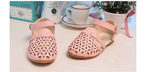 WIN 可愛い キッズ フラットシューズ 女の子 ガールズ サンダル ベビー靴 ベルクロシューズ つま先保護 透かし彫り 女児 子供 フォーマル ベビー 赤ちゃん フォーマル (内寸18cm, ピンク)