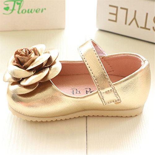 WIN ベビー 夏 シューズ 赤ちゃん 可愛い プレゼント 軽量 履かせやすい マジックテープ ストラップ 花 新生児 フォーマル靴 (内寸15cm, ゴールド)