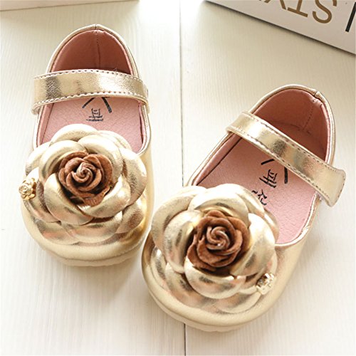 WIN ベビー 夏 シューズ 赤ちゃん 可愛い プレゼント 軽量 履かせやすい マジックテープ ストラップ 花 新生児 フォーマル靴 (内寸12cm, ゴールド)