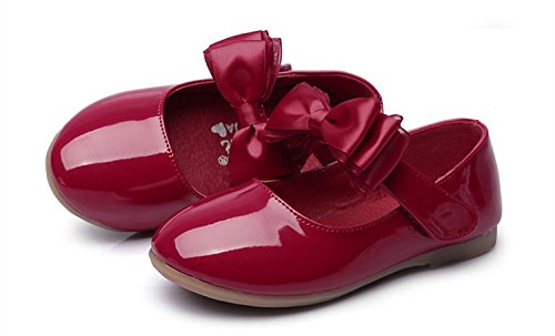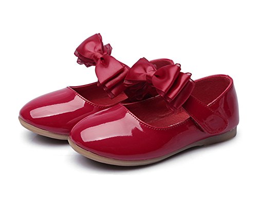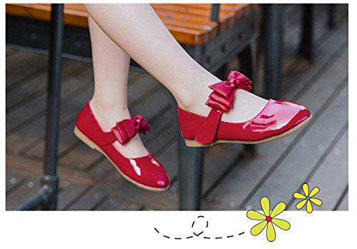 WIN プリンセス風 子供 キッズ靴 フラットシューズ 女の子PUレザー製 ガールズ フラワー 女児 ベビー 赤ちゃん フォーマル 結婚式 可愛い 花 女の子 シューズ (内寸16cm, レッド)