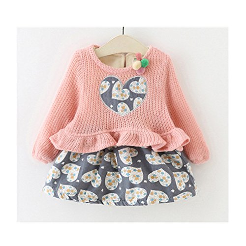 WIN 子供服 ガールズ ワンピース チュニック リボン あったか 裏起毛 入学式 入園式 卒業式 卒園式 キッズ 子供服 女の子 ガール ガールズ 礼服 (90cm, ピンク)