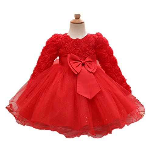 WIN 子供ドレス キッズワンピース フォーマル女児 キッズ 服 子供 長袖 女の子 ガールズ ワンピース 結婚式 発表会 入園式 入学式 卒園式 卒業式 七五三 出産祝い 記念写真 (80cm, レッド)
