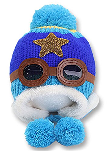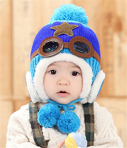 WIN ット帽子 耳あて パイロット ベビー キッズ 選べる6色 ベビー & キッズ 用 パイロット 風 ハット (ディープブルー)