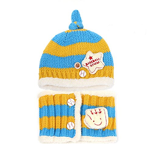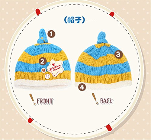 WIN 帽子&マフラー セット 耳も首もふんわりあったか ベビー キッズ ニット帽 防寒グッズ マフラー 防寒対策 ギフトに最適 (ライトブルー)