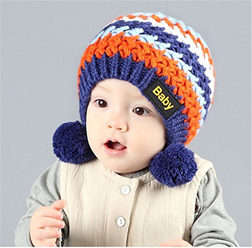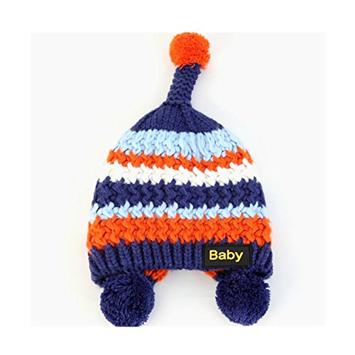 WIN キッズ 用 かわいい 赤ずきんちゃん風 ニット帽 耳 首元 足 ニット帽 ポンチョ 公園 お出かけ お散歩 赤ずきん 風 帽子 ニット ボンボン ネックウォーマー ベイビー ベビー キッズ こども 幼児 赤ちゃん (ネイビー)