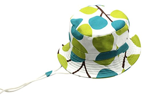 WIN ベビー 帽子 キッズ サファリハット テンガロンハット サンバイザー つば広 日よけ帽 子供 赤ちゃん 女の子 可愛い リーフ柄 紫外線対策 頭周り (頭周り54cm, グリーン)
