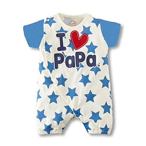 WIN ロンパース 半袖 綿 カバーオール ベビー 赤ちゃん 新生児 肌着 ボディースーツ 男の子 女の子 かわいい 夏 出産祝い 前開き 半袖 ロンパース (80cm, ブルー)