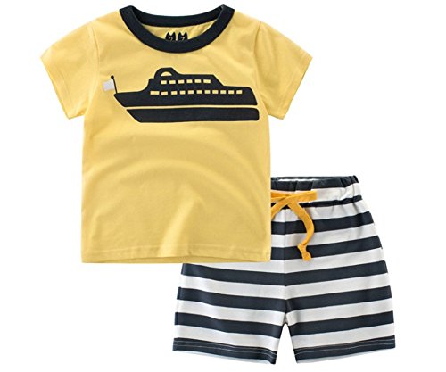 WINベビー服 赤ちゃん 男の子 キッズ Tシャツ ズボン セットアップ 子供 可愛い 春夏 カジュアル お出かけ 出産祝い (120, イエロー)