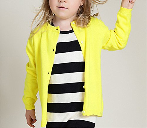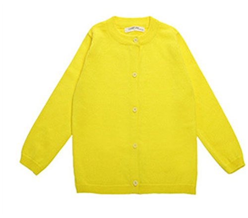 WIN キッズ 子供服 女の子 女児 ガールズ 長袖 ニット セーター かわいい おしゃれ着 お出かけ ニット コート ジャケット カーディガン 長袖 女の子 子供服 (120cm, イエロー)