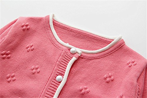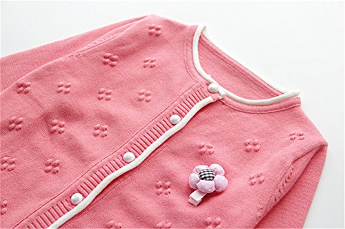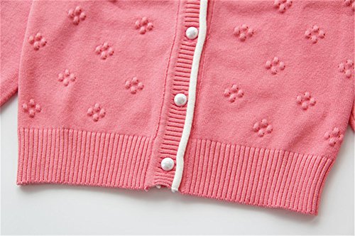 WIN キッズ 子供服 女の子 女児 ガールズ 長袖 ニット セーター かわいい おしゃれ着 冷房対策 お出かけ ニット コート ジャケット カーディガン 長袖 秋冬子供服 (120cm, バラ色)