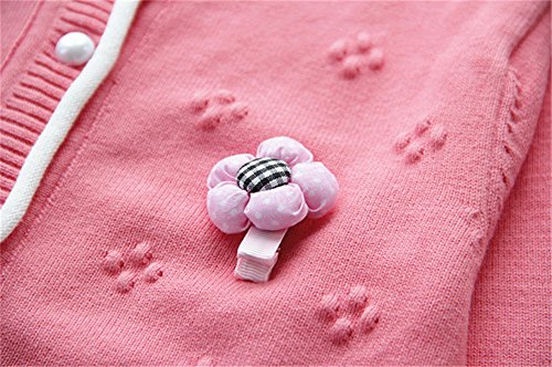 WIN キッズ 子供服 女の子 女児 ガールズ 長袖 ニット セーター かわいい おしゃれ着 冷房対策 お出かけ ニット コート ジャケット カーディガン 長袖 秋冬子供服 (90cm, バラ色)