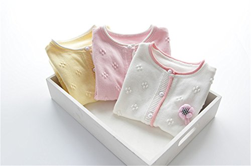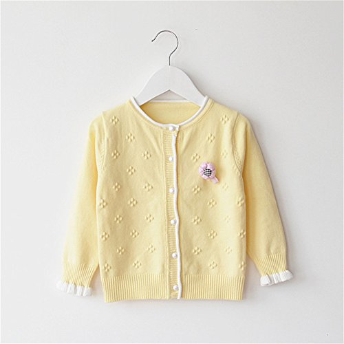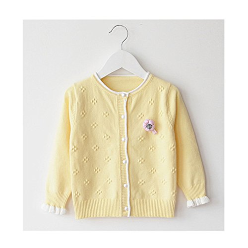 WIN キッズ 子供服 女の子 女児 ガールズ 長袖 ニット セーター かわいい おしゃれ着 冷房対策 お出かけ ニット コート ジャケット カーディガン 長袖 秋冬子供服 (90cm, イエロー)