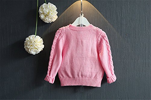 WIN ベビー ケーブルセーター 女児 女の子 子供服 長袖 ニットセーター クルーネック 毛糸セーター キッズ こども 秋冬着 通園 結婚式 発表会 お出かけ (90cm, ピンク)