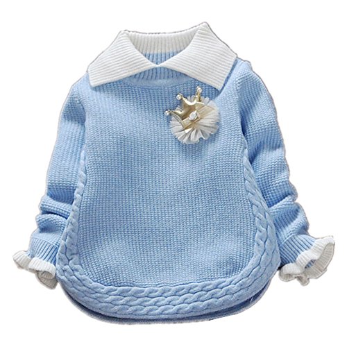 WIN セーター 子供服 女の子 トップス  女児 女の子 子供服 長袖 ニットセーター ニット ウェア シャツ トップ セーター カーデ 春秋 可愛い おしゃれ着 冷房対策 お出かけ ニット (100cm, ブルー)